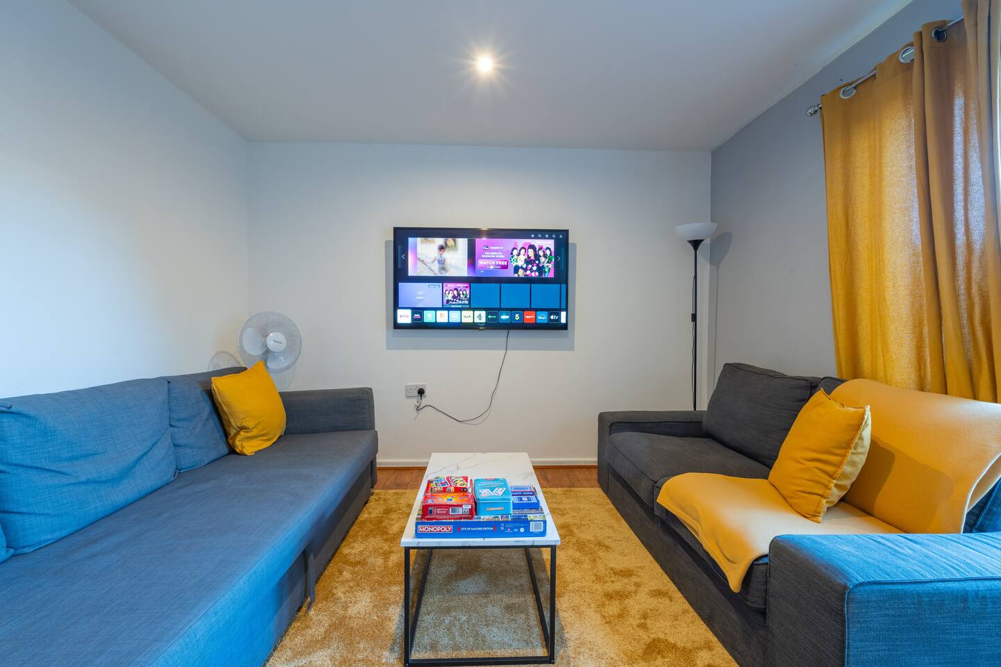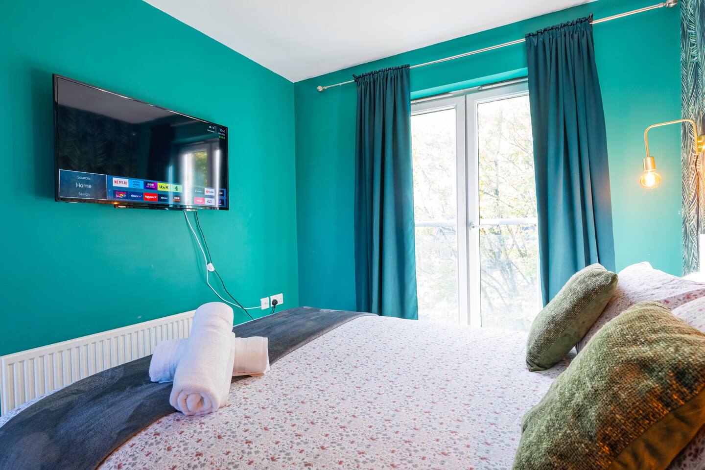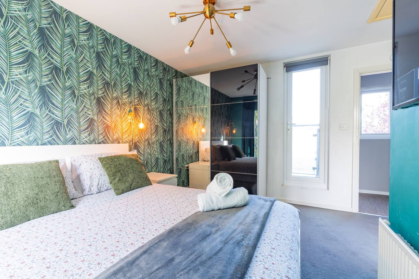 Property Highlights: • 4 comfortable bedrooms (2 with en-suites, complete bathrrom). • Smart entertainment: TVs in living room + 3 bedrooms. • Chef-ready kitchen: Fully equipped with all utensils and appliances including dishwasher. • Outdoor space: Private garden + parking for multiple cars. • Superfast WiFi. • We provide all beddings and bath towels (Hotel quality). • Washing machine and separate tumble drier. Sleeping arrangements: Bedroom 1 (en-suite): 1 King bed. Bedroom 2 (en-suite): 1 King bed but can be converted into 2 single beds. Bedroom 3: Double bed. Bedroom 4: 1 single bed (one bathroom with shower and bathtub to be shared with bedroom 3 and 4). Living room: 2 sofa beds (one bathroom close by). The Neighbourhood: • 🎤 AO Arena – Manchester venue for concerts & events (4 minutes away). • ⚽ Old Trafford and Etihad Stadium – 4 and 3 miles, respectively. • 🚆 Victoria Train Station – 5 minutes away. • 🍻 Restaurants, supermarkets and shops within walking distance.