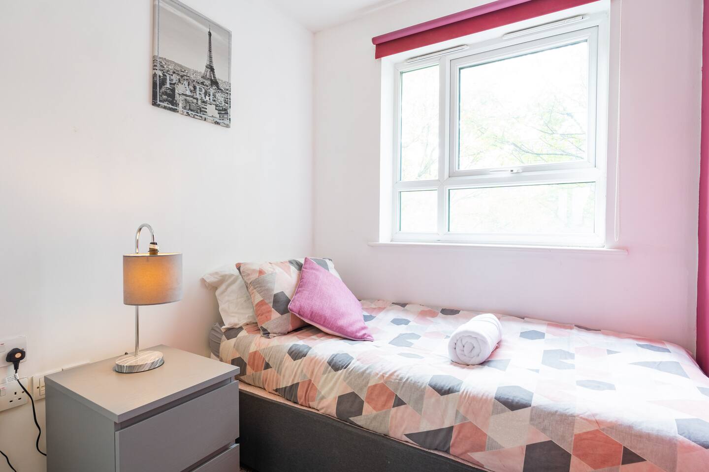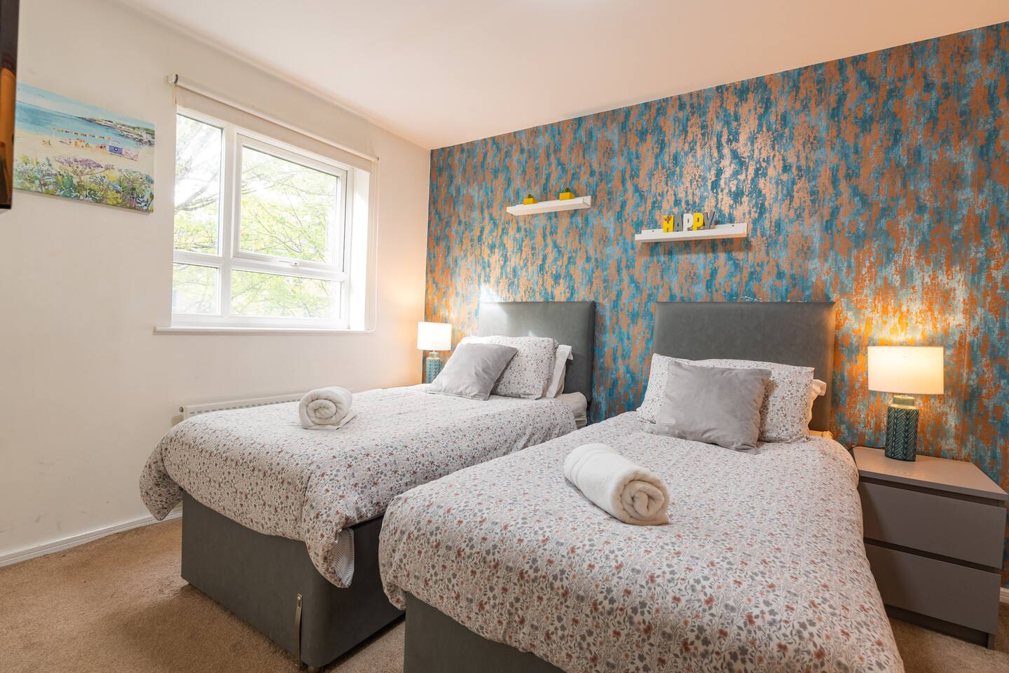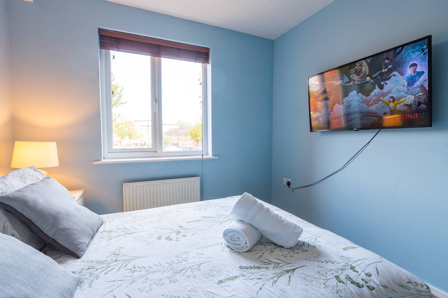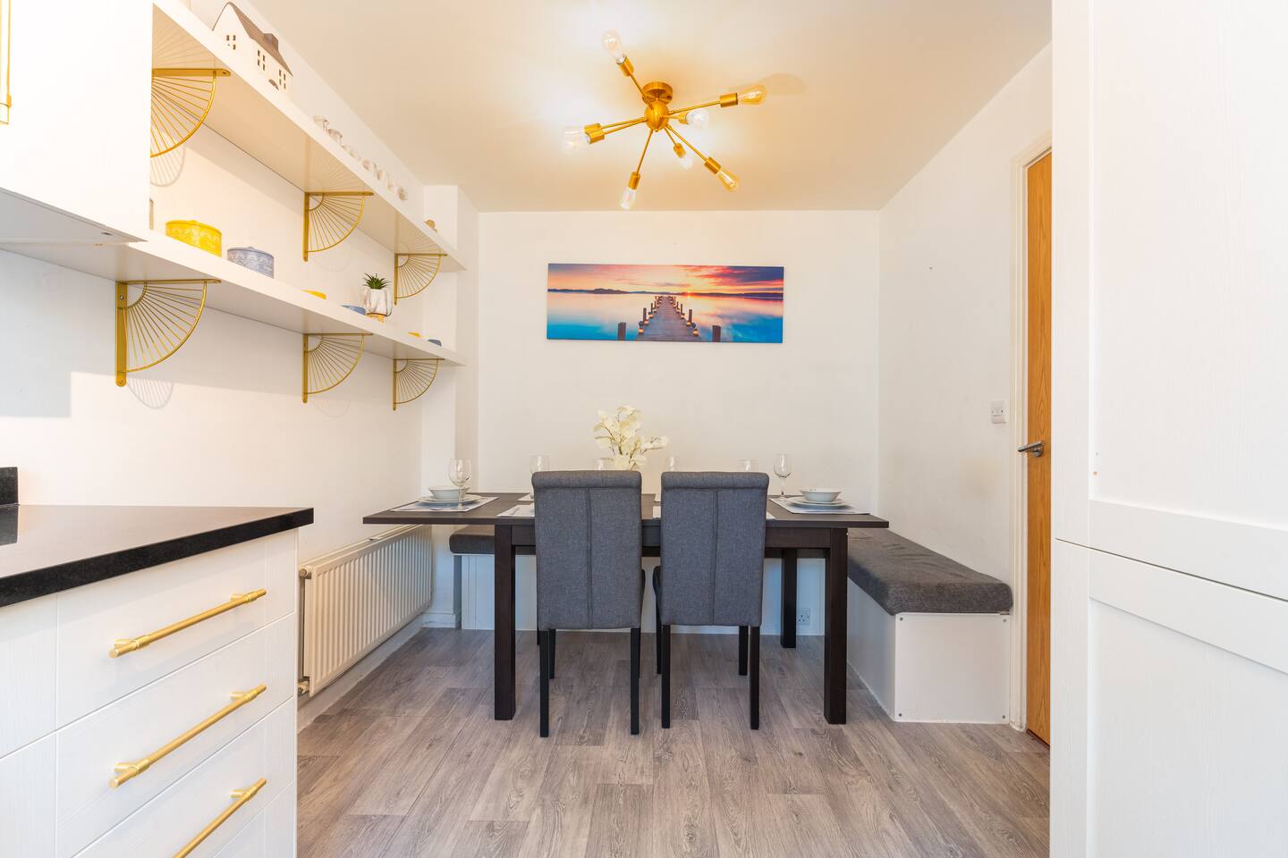 Property Highlights: • 4 comfortable bedrooms (2 with en-suites, complete bathrrom). • Smart entertainment: TVs in living room + 3 bedrooms. • Chef-ready kitchen: Fully equipped with all utensils and appliances including dishwasher. • Outdoor space: Private garden + parking for multiple cars. • Superfast WiFi. • We provide all beddings and bath towels (Hotel quality). • Washing machine and separate tumble drier. Sleeping arrangements: Bedroom 1 (en-suite): 1 King bed. Bedroom 2 (en-suite): 1 King bed but can be converted into 2 single beds. Bedroom 3: Double bed. Bedroom 4: 1 single bed (one bathroom with shower and bathtub to be shared with bedroom 3 and 4). Living room: 2 sofa beds (one bathroom close by). The Neighbourhood: • 🎤 AO Arena – Manchester venue for concerts & events (4 minutes away). • ⚽ Old Trafford and Etihad Stadium – 4 and 3 miles, respectively. • 🚆 Victoria Train Station – 5 minutes away. • 🍻 Restaurants, supermarkets and shops within walking distance.