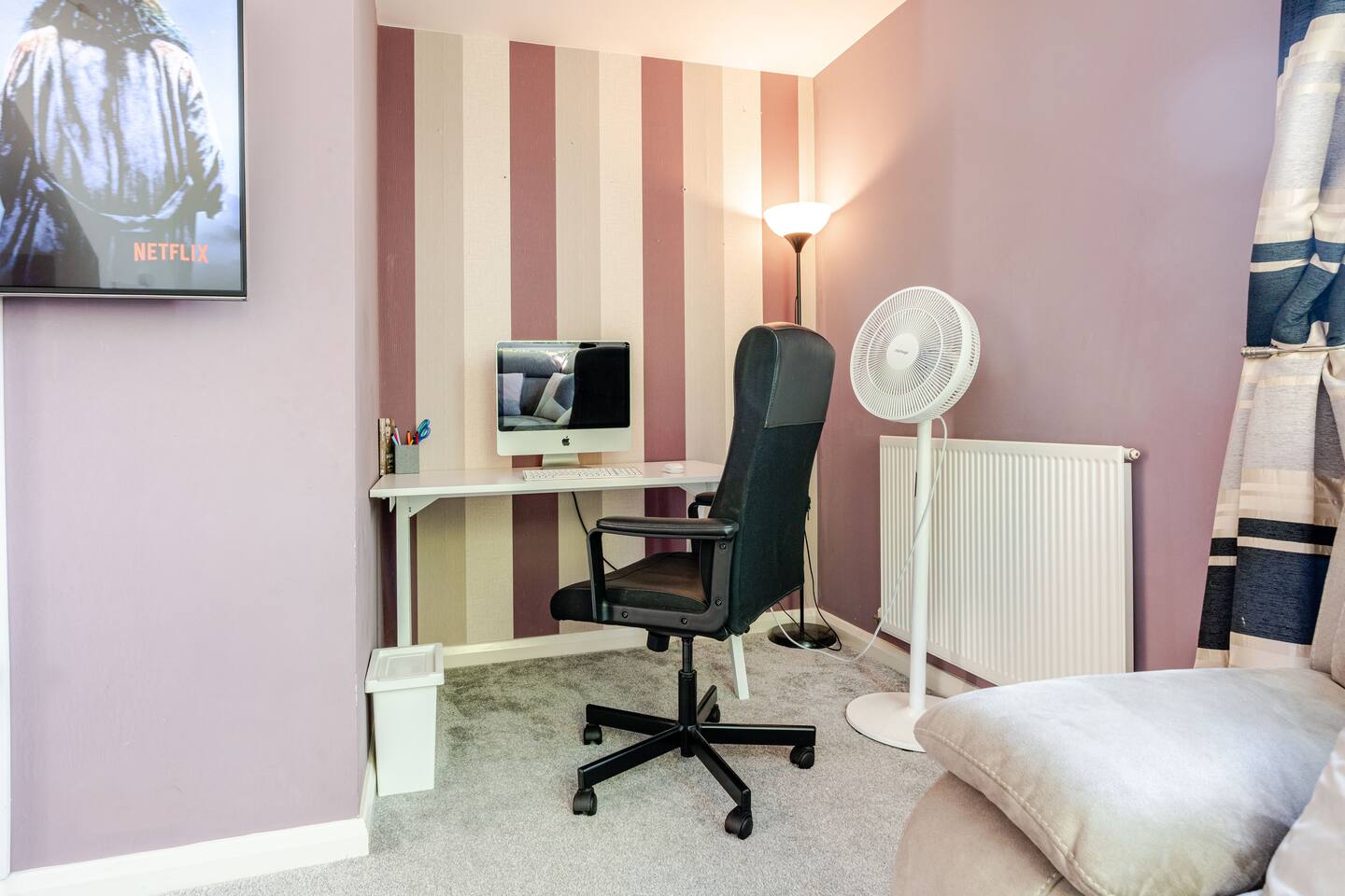 Why You’ll Love It here? ✔ Prime Location – close to Etihad Stadium, Co-Op Live, and easy city centre access. ✔ Spacious & Comfortable – 3 bedrooms, 3 bathrooms, and 2 living rooms areas (plenty of room to relax). ✔ Reclinable Sofa & Entertainment – Sink into the ultra-comfy recliner and stream movies on the Smart TV. ✔ Free On-Site Parking – No hunting for spots or expensive car parking. ✔ Ideal for Groups – Sleeps 7+ comfortably, great for match days, concerts, or city breaks. Sleeping arrangement: Bedroom 1: 1 super king bed (this is an en-suite room). Bedroom 2: 1 double bed and 1 single bed. Bedroom 3: 1 double bed. Living room 1: single mattresses can be provided and place in the bedroom or living room. Living room 2: 1 sofa bed. If you need to work/study, there is a good chair, desk and even a computer that you can use. For convenience each floor has one bathroom. Check out our great reviews! Book Now & Enjoy: - Fast, free Wi-Fi – Stay connected. - Fresh linens & bath towels – Hotel-quality comfort. - Easy self-check-in with keyless entry – Arrive hassle-free.